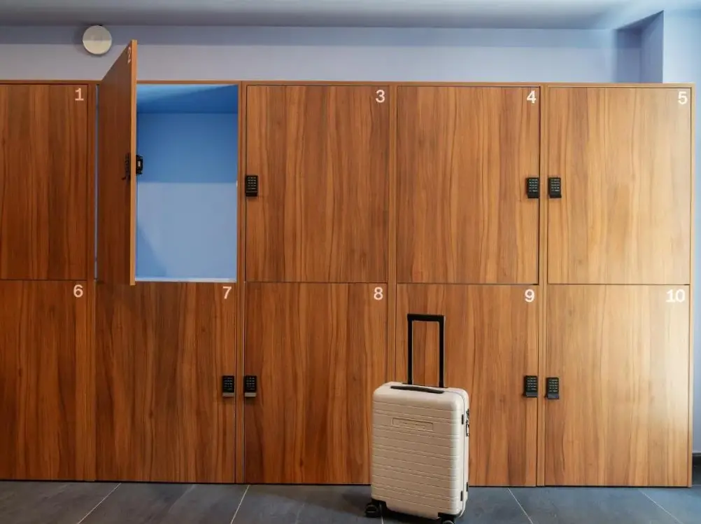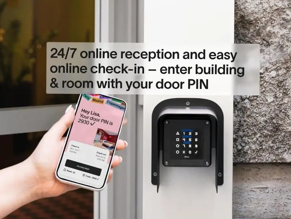 Quarto com varanda e vista para um pátio industrial. No geral, o quarto era muito limpo, mas a geladeira estava suja. A porta de entrada era complicada; às vezes, o código funcionava na primeira tentativa, mas geralmente eram necessárias várias tentativas. A chave digital geralmente não funcionava.