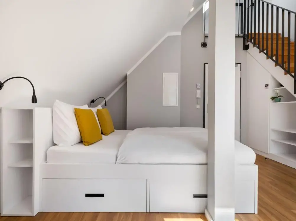 Perto de várias paragens de autocarro e de uma mercearia. O prédio de apartamentos era geralmente silencioso. Estúdio amplo com cama confortável e muito espaço no armário.